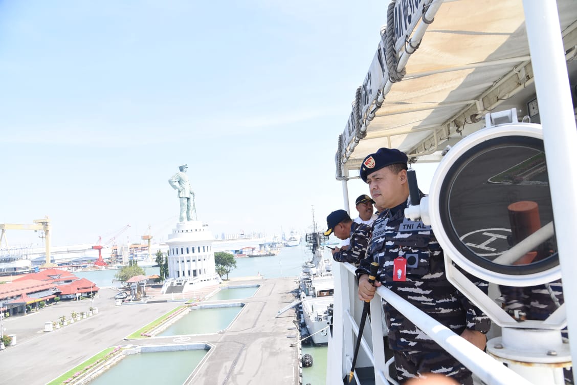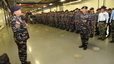 Surabaya (cokronews.com) —– Bertempat di Geladak Tank Deck KRI dr. Radjiman Wedyodiningrat-992, yang sandar di Dermaga Madura Tengah Koarmada II Ujung Surabaya. Minggu (12/5). Danguskamla Koarmada II Laksma TNI Teguh Prasetya, S.T., M.M., CHRMP., selaku Wadan Satgasla Pam KTT WWF Ke-10 Tahun 2024, mewakili Panglima Komando Armada (Pangkoarmada) II Laksda TNI Ariantyo Condrowibowo, selaku Komandan Satuan Tugas (Dansatgas) Laut, memimpin Apel Kelengkapan dalam rangka Pam Konferensi Tingkat Tinggi (KTT) World Water Forum (WWF) Ke-10Tahun 2024 di Bali pada tanggal 18 Mei s.d. 25 Mei 2024.