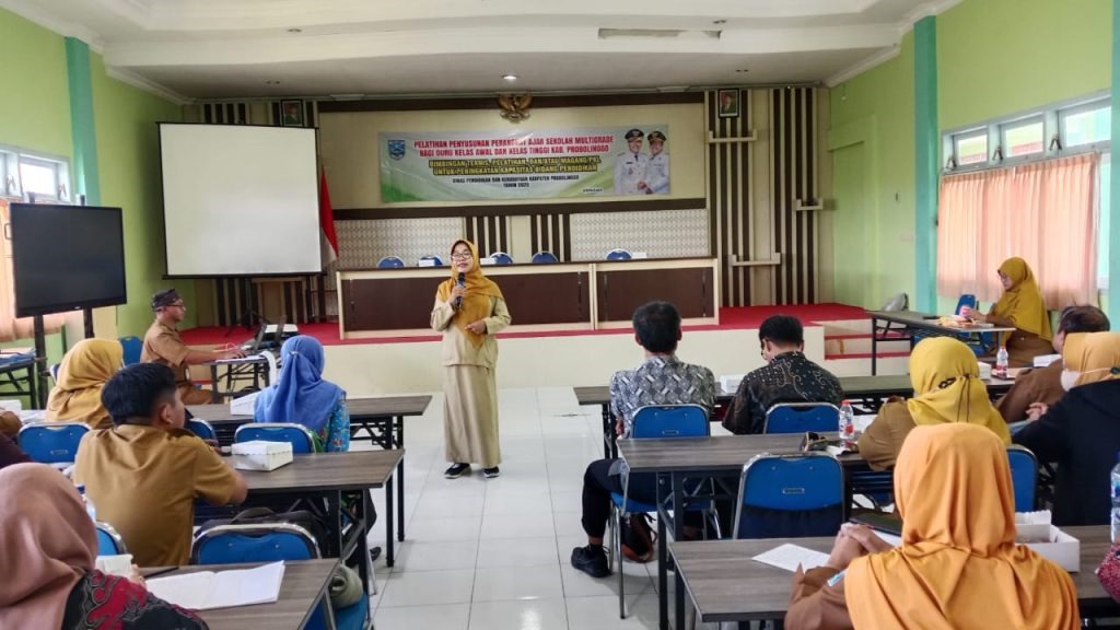 Probolinggo (cokronews.com) — Dalam rangka meningkatkan mutu pembelajaran di Sekolah Dasar (SD), Dinas Pendidikan dan Kebudayaan (Disdikdaya) Kabupaten Probolinggo memberikan pelatihan penyusunan perangkat ajar sekolah multigrade (kelas rangkap) bagi guru kelas awal dan kelas tinggi Kabupaten Probolinggo, Senin dan Selasa (7-8/7/2025).