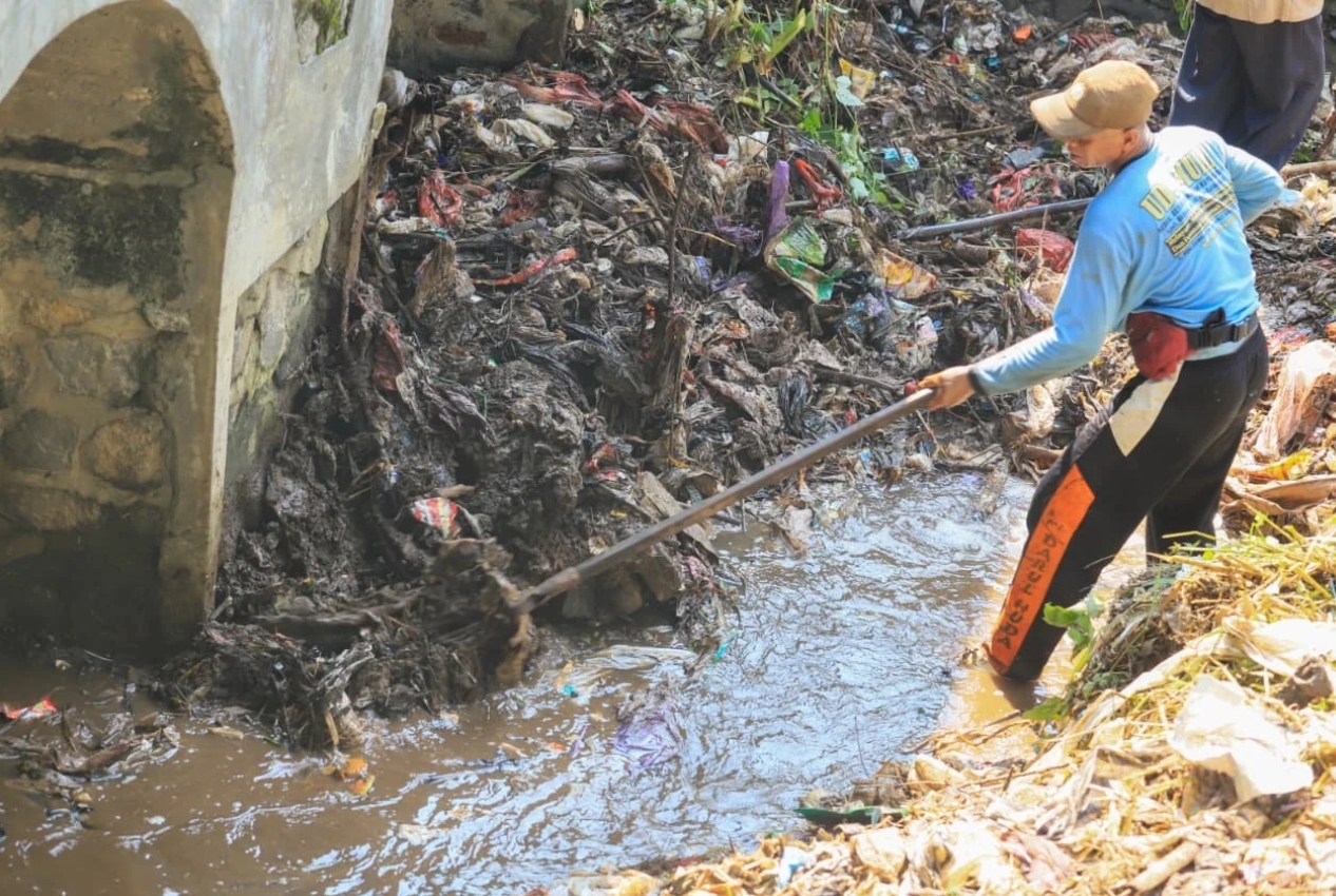 CokroNews PONOROGO – Tumpukan sampah yang menghambat aliran sungai tak jauh dari kawasan Tempat Pemrosesan Akhir (TPA) Mrican akhirnya naik ke daratan. Dinas Lingkungan Hidup (DLH) mengerahkan sekitar 25 personel untuk mengangkat sampah yang menumpuk di bawah jembatan timur Balai Desa Mrican itu, Jumat (10/4/2026).