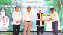 Penghargaan diserahkan bersamaan acara Sinergi Rimbawan dalam rangka Pemulihan Ekosistem dan Peningkatan Sosial Ekonomi Masyarakat Kehutanan Jawa Timur yang berlokasi di Wisata Bukit Kayoe Putih, Kabupaten Mojokerto, Selasa (22/7/2025).