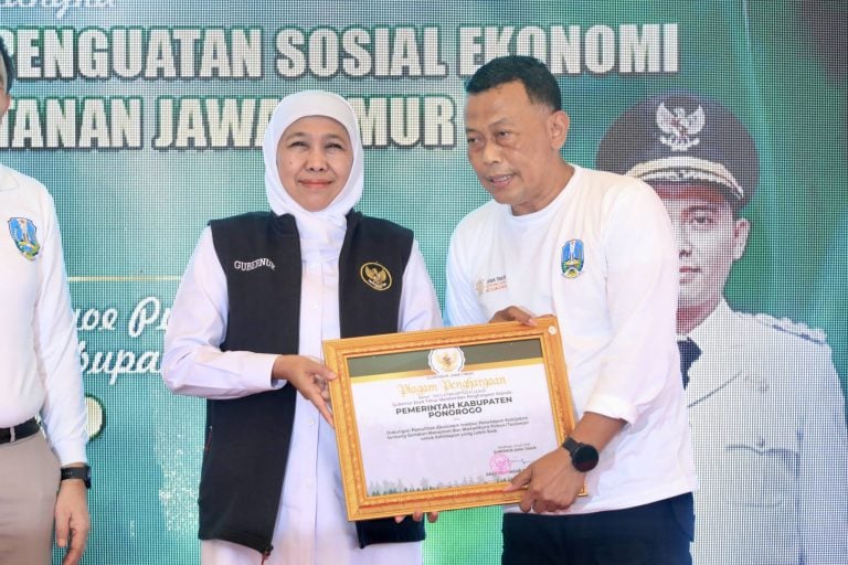Gubernur Jatim Khofifah Indar Parawansa menyerahkan langsung penghargaan kepada Bupati Ponorogo Sugiri Sancoko atas dukungannya terhadap pemulihan ekosistem. Kategori apresiasi adalah penetapan gerakan menanam dan memelihara pohon yang lebih baik.