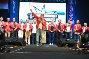 Karanganyar (cokronews.com) — Dalam rangka memperingati Hari Ulang Tahun ke-78 Koperasi, Dinas Koperasi, Usaha Kecil, Transmigrasi, Energi dan Sumber Daya Mineral (Diskuktrans ESDM) Kabupaten Karanganyar menggelar konser dengan bintang tamu grup musik Guyon Waton, Sabtu, 26 Juli 2025, malam di Alun-Alun Karanganyar.