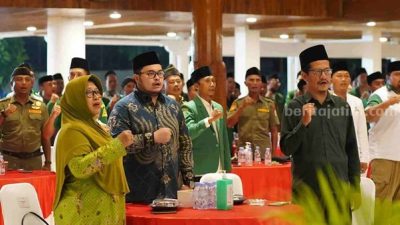 Kediri (cokronews.com) —- Bupati Kediri Hanindhito Himawan Pramana atau Mas Dhito menitipkan pesan khusus kepada Gerakan Pemuda (GP) Ansor. Pesan itu disampaikan saat Mas Dhito menghadiri Resepsi Hari Lahir (Harlah) GP Ansor ke-90 sekaligus Halal Bihalal di Pendopo Panjalu Jayati pada Jumat (3/5/2024).