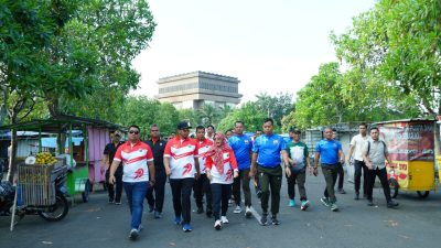 Kediri (cokronews.com)— Dalam rangka memperingati Hari Ulang Tahun (HUT) Bhayangkara ke-79, Polres Kediri bersama Pemerintah Kabupaten Kediri menggelar jalan sehat di kawasan Simpang Lima Gumul, Sabtu (28/6). Kegiatan ini menjadi momentum memperkuat sinergi antara Polri dan pemerintah daerah dalam mendukung pembangunan Kabupaten Kediri yang aman dan sejahtera.