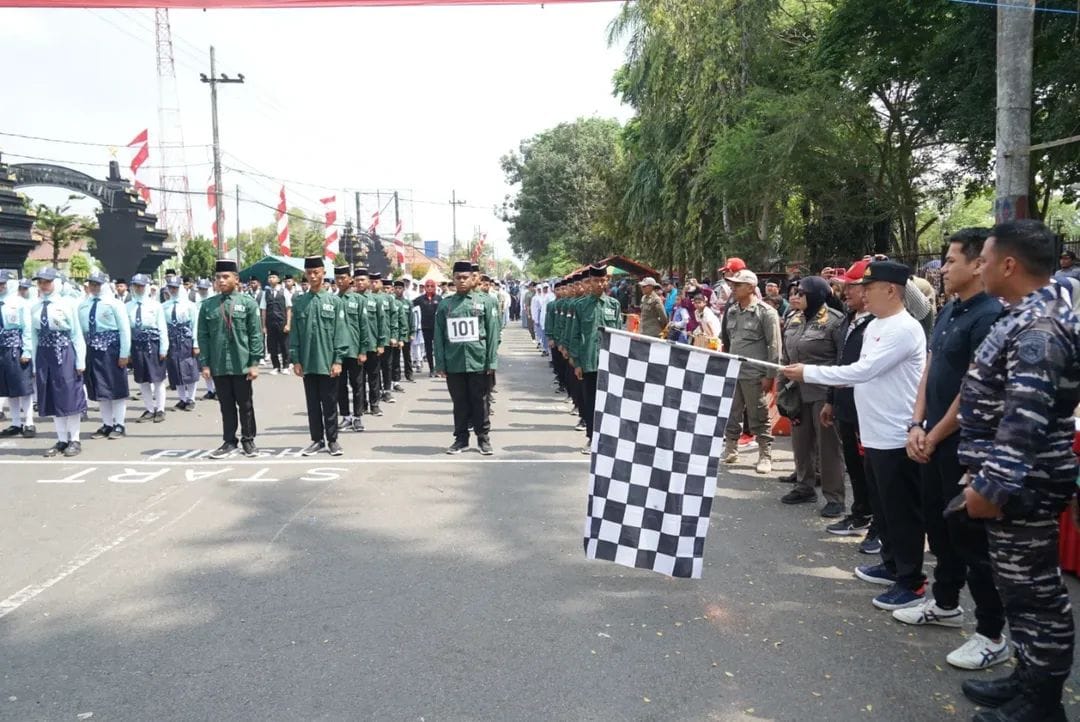 Sementara itu, peserta lainnya menunjukkan kekompakan dengan barisan rapi dan langkah serasi, menempuh rute dengan penuh semangat.