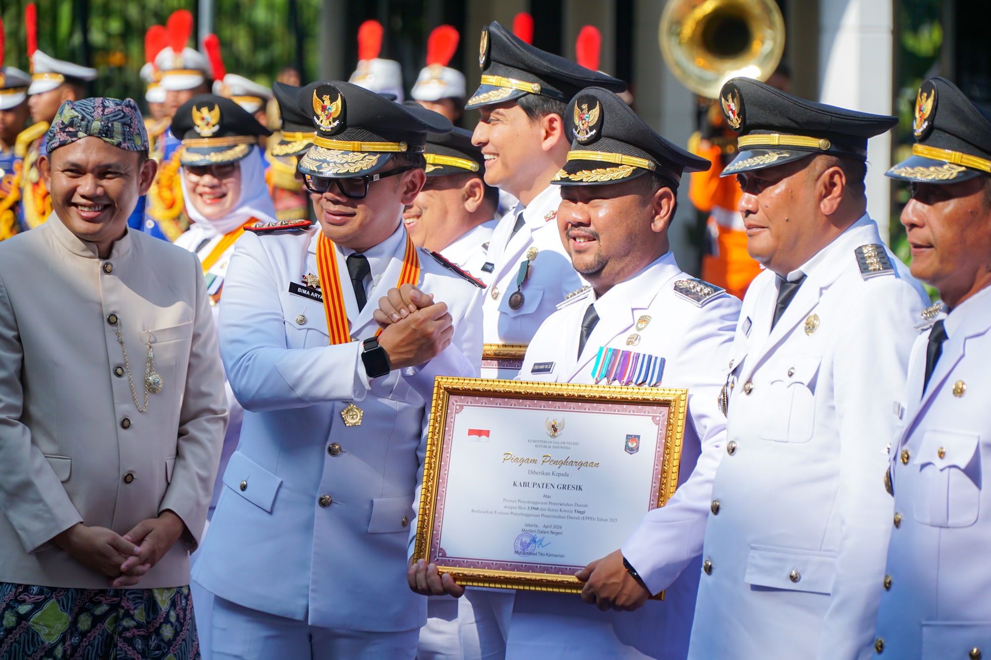 Penghargaan tersebut diserahkan di Jakarta pada Senin (27/4) dan diterima Bupati Gresik, Fandi Akhmad Yani, sebagai bentuk apresiasi atas capaian kinerja penyelenggaraan pemerintahan daerah tahun 2025 berdasarkan laporan tahun 2024.
