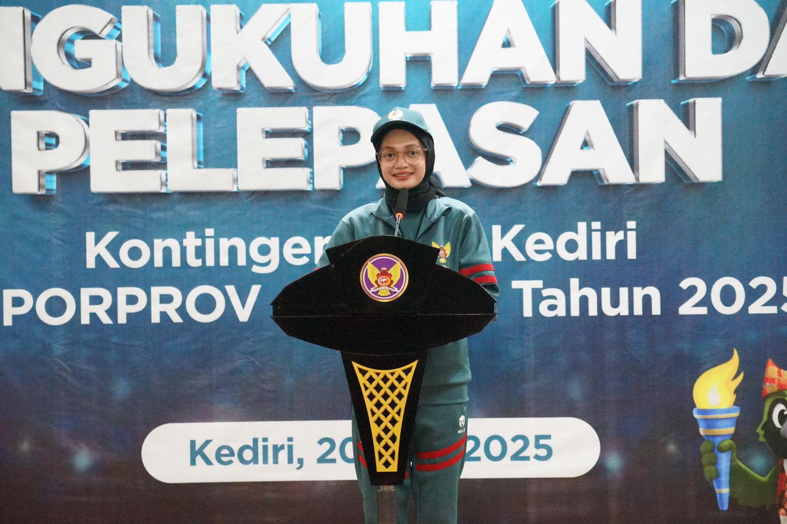 Wali Kota Kediri Vinanda Prameswati mengukuhkan sekaligus melepas Kontingen Kota Kediri di Porprov Jatim IX Tahun 2025. Acara berlangsung di Ruang Joyoboyo Balai Kota Kediri, Jumat (20/06/2025). Porprov Jatim IX tahun ini berlangsung di Malang Raya mulai tanggal 28 Juni hingga 5 Juli mendatang.