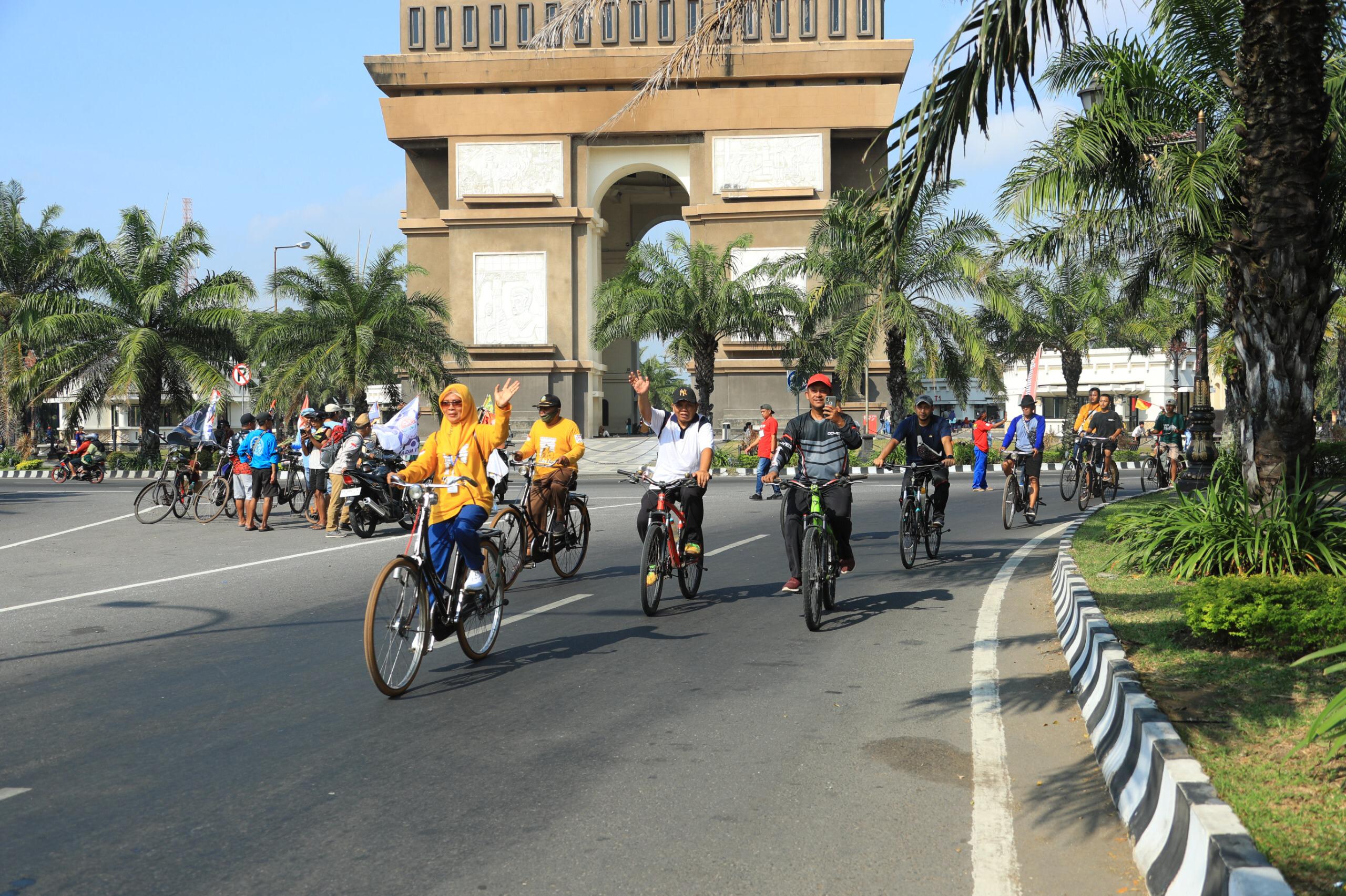 Kediri (cokronews.com) —– Dalam rangkaian acara memperingati Hari Jadi Kabupaten Kediri yang ke-1220 Pemkab Kediri bekerjasama dengan Kosti Kediri menggelar acara Ngonthel Bareng Mas Bup dan Kosti Kediri yang bertempat di Area Simpang Lima Gumul (SLG), Minggu (2/6).
