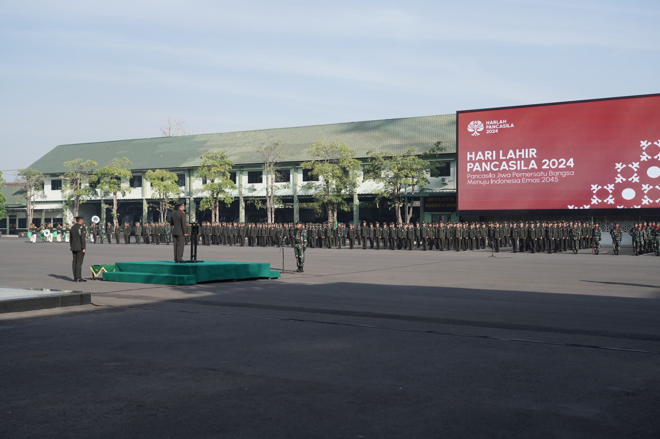 Upacara peringatan Hari Lahir Pancasila tahun ini dilaksanakan di Lapangan Ahmad Yani Makodam V/Brawijaya, Surabaya, dengan Pangdam V/Brawijaya Mayjen TNI Rafael Granada Baay sebagai inspektur upacara dengan mengusung Tema “Pancasila Jiwa Pemersatu Bangsa Menuju Indonesia Emas 2045”.