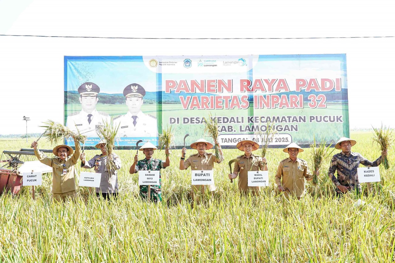Sedangkan harga gabah kering di Lamongan berkisar di angka Rp. 7.000 per kg. Hal tersebut sebagaimana diungkapkan Bupati Lamongan Yuhronur Efendi saat panen raya padi, di Desa Kedali Kecamatan Pucuk, Selasa (8/7/2025).
