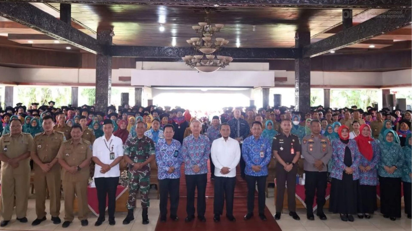 Nganjuk ( cokronews.com ) —- Bertempat di Pendopo KRT. Sosro Koesoemo Pemkab Nganjuk, Selasa ( 05/11/24) Pj. Bupati Nganjuk Sri Handoko Taruna, mewisuda sejumlah 580 Lulusan Sekolah Orang Tua Hebat (SOTH) Kab. Nganjuk Tahun 2024, dari 7 kecamatan. Acara wisuda ini bertujuan memberikan apresiasi dan penghargaan kepada keluarga balita yang telah mengikuti sampai dengan lulus SOTH Kab. Nganjuk tahun 2024, serta meningkatkan peran kelompok BKB menjadi sekolah pengasuhan dan pembinaan tumbuh kembang dan pembentukan karakter bagi keluarga yang memiliki anak usia dini.