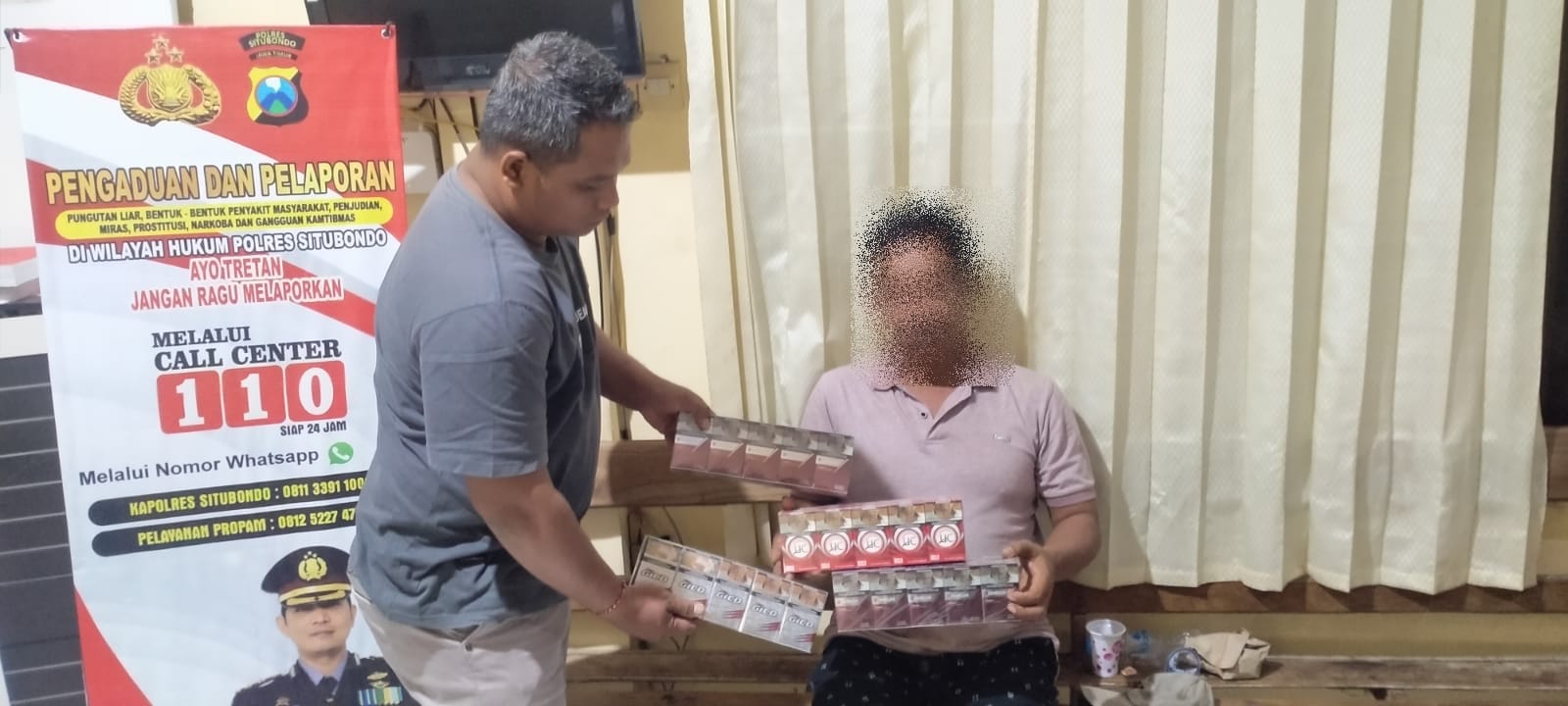 Berkat kesigapan personel Satpolairud yang ada di darat (pelabuhan Besuki) sehingga pemilik rokok dapat ditemukan setelah pemilik turun dari kapal tambangan menuju pesisir.
