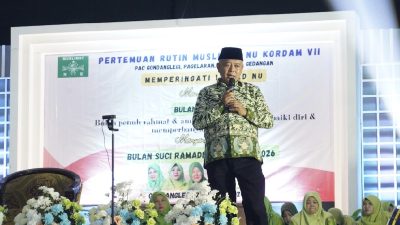 Gondanglegi ( cokronews.com ) —– Dalam rangka menyambut bulan sya’ban dan bulan suci ramadhan, Bupati Malang Drs. H. M. Sanusi, M. M., didampingi Ketia TP PKK kabupaten Malang Hj. Anis Zaida Sanusi, hadiri Pertemuan Rutin PAC Muslimat NU Kordam VII yakni Wilayah Kecamatan Gedangan, Pagelaran, Bantur dan Gondanglegi, bertempat di Gedung Bachelor Kecamatan Gondanglegi, Minggu (25/1) pagi. Hadir pada kesempatan yang sama Ketua Kordam VII Muslimat, Ketua PAC Muslimat NU di 4 Kecamatan beserta Para Pengurus, Tokoh Agama, Tokoh Masyarakat, Badan Otonom (Banom), Camat dan Forkopimcam Gondanglegi.