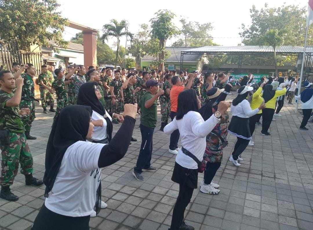 Sidoarjo (Cokronews.com) —– Kegiatan senam bersama masyarakat menjadi momen yang tak terlupakan di Pendopo Balai Desa Penambangan Kecamatan Balongbendo Kabupaten Sidoarjo. Suasana kebersamaan dan semangat gotong royong begitu terasa dalam rangka mendukung TNI Manunggal Membangun Desa (TMMD) Ke-120. Antusiasme dan semangat gotong royong mewarnai kegiatan senam bersama masyarakat dalam rangka mendukung TNI Manunggal Membangun Desa (TMMD) Ke-120. Jum’at, 31 Mei 2024.