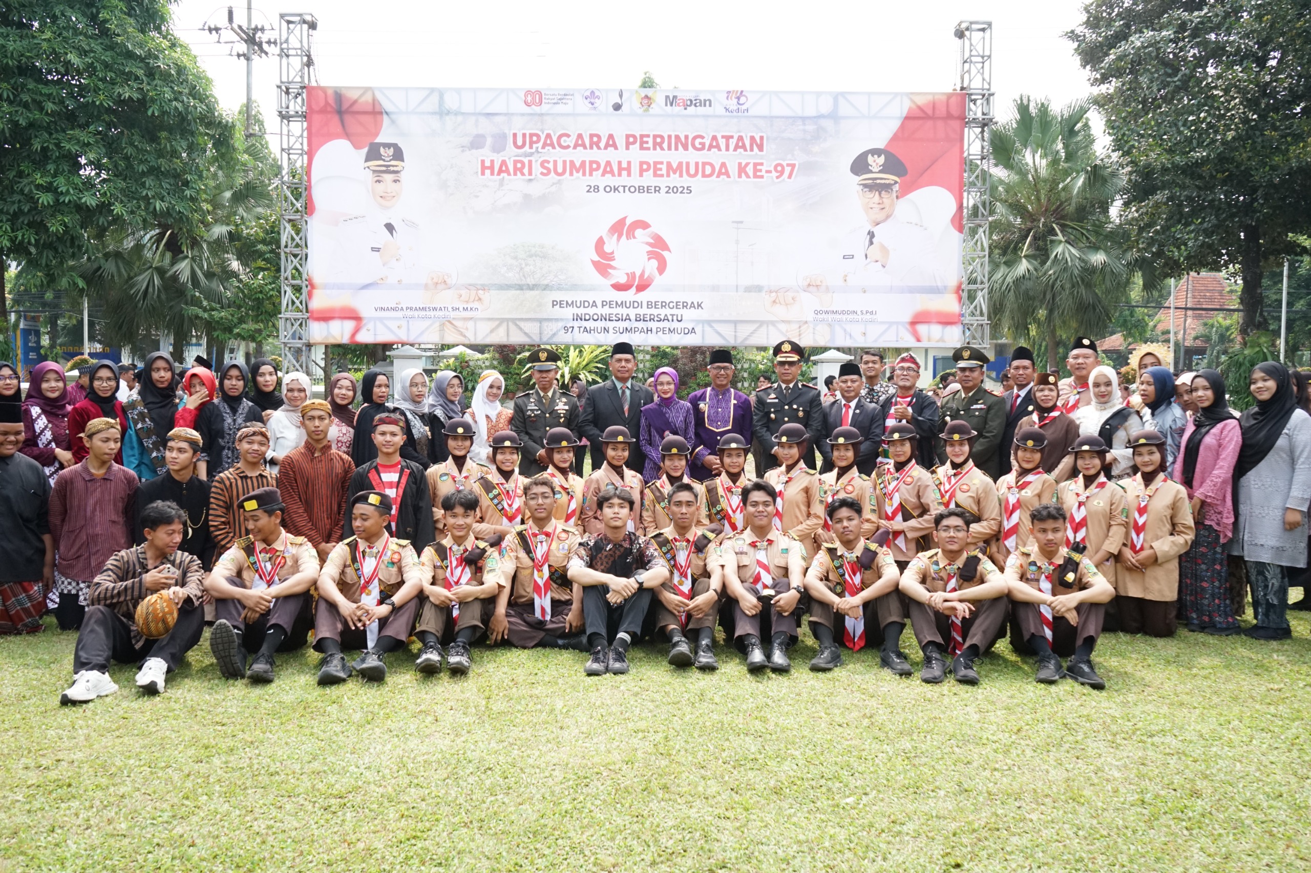 Peringatan Hari Sumpah Pemuda ke-97 tahun 2025 di Kota Kediri digelar di Halaman Balaikota Kediri, Selasa (28/10/2025). Bertindak sebagai inspektur upacara, Wali Kota Kediri Vinanda Prameswati, yang dalam kesempatan ini juga memberikan apresiasi kepada anggota Pramuka Kota Kediri yang berprestasi.
