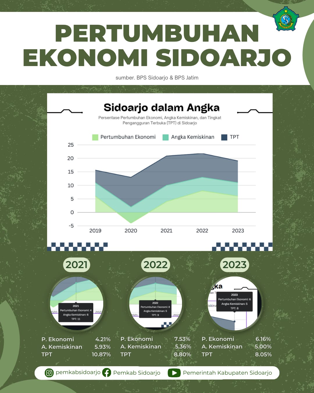 “Ekonomi Sidoarjo tahun 2023 ini tumbuh diikuti dengan turunnya angka kemiskinan. Selain itu, Tingkat Pengangguran Terbuka (TPT) juga turun 0,75 persen dari tahun sebelumnya sebesar 8,80 persen menjadi 8,05 persen,” pungkasnya.