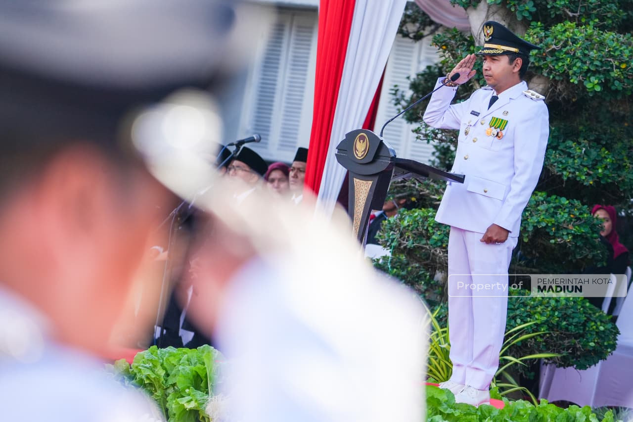 CokroNews MADIUN – Upacara Peringatan Hari Otonomi Daerah ke-30 Pemerintah Kota Madiun tahun 2026 berlangsung khidmat di halaman Balai Kota, Senin (27/4). Plt Wali Kota Madiun, F. Bagus Panuntun bertindak sebagai inspektur upacara dan memimpin langsung jalannya prosesi yang diikuti jajaran Forkopimda, kepala OPD, camat, lurah, serta tenaga pendidik.