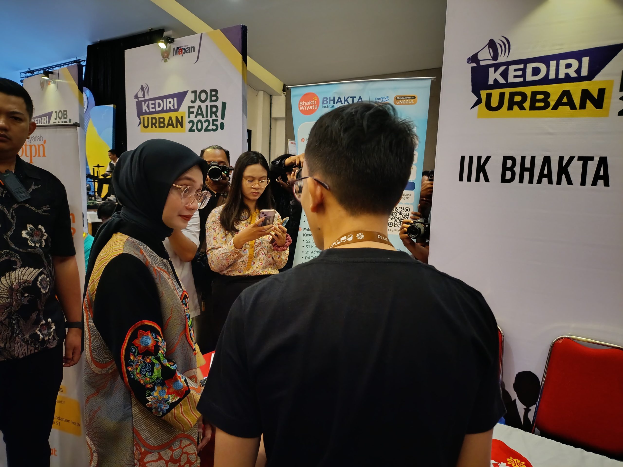 Setelah meresmikan pembukaan Kediri Urban Job Fair 2025, Vinanda juga menyempatkan waktunya untuk berkeliling mengunjungi perusahaan-perusahaan yang turut hadir mengisi stand-stand juga bertegur sapa dengan para pencari kerja. (I. Tania)