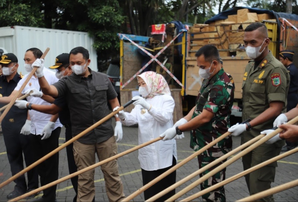 Wakil Bupati Malang dengan penuh keseriusan mengikuti setiap momen acara dari awal hingga akhir. Dalam kesempatan tersebut, beliau juga bergabung dengan tamu VIP lainnya untuk memusnahkan barang bukti hasil penindakan bea cukai, hal ini menunjukkan komitmen bersama dalam memberantas pelanggaran.